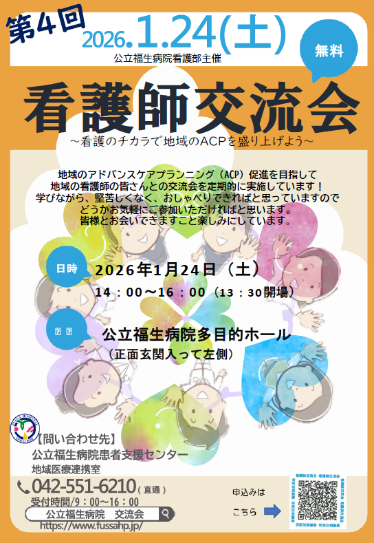 詳細は、下記に添付の「看護師交流会」の案内をご覧ください。